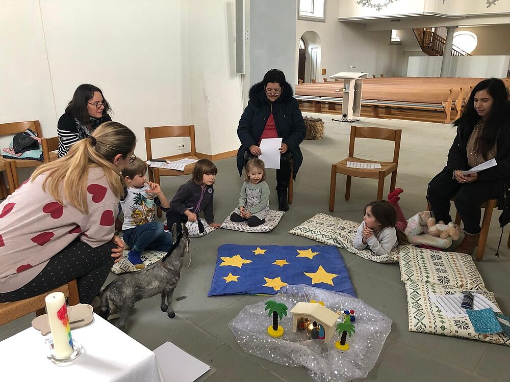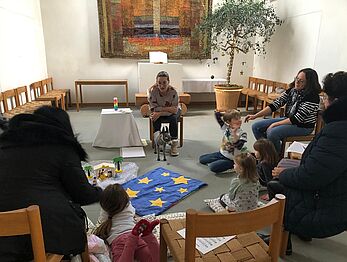Seit Januar 2024 gibt es in der evangelischen und katholischen Kirchgemeinde ein neues Angebot, das sich an kleine Kinder bis Kindergartenalter und ihre Eltern, Grosseltern, Gotte oder Göttis usw. richtet. Im ersten Teil, der in der Kirche stattfindet, wird in kindgerechter Weise eine Geschichte erzählt.