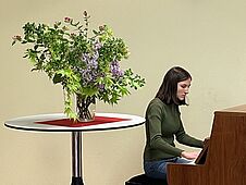 Monika Zampieri und Andrietta Ronner erzählten über die Anfänge, Pfrn. Bettina Kindschi zeigte die gute ökumenische Zusammenarbeit auf und die katholische Gemeindeleiterin Barbara Weinbuch sorgte mit ihrem spirituellen Impuls für die Abrundung dieses bunten ökumenischen Blumenstrauss. Vasylysa Balchos umrahmte diesen bunten Blumenstrauss musikalisch am Klavier.