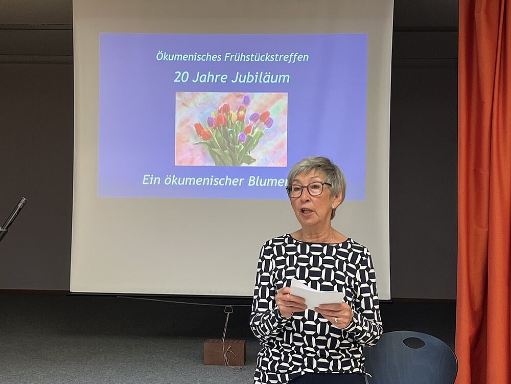 Am Dienstag, 23. April fand die Jubiläumsausgabe des Frühstücktreffens statt. Vor 20 Jahren als «Frauenfrühstück» ins Leben gerufen ist es heute als «Frühstückstreffen» fester Bestandteil des Angebots der evangelischen und katholischen Kirchgemeinde. Das Frühstückstreffen ist ein weiteres gelungenes ökumenisches Projekt und dessen Bestehen wurde mit einem bunten ökumenischen Blumenstrauss gefeiert.