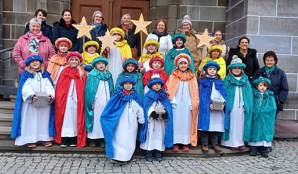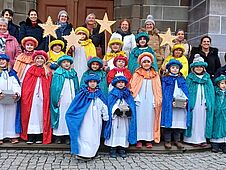Am 6. Januar waren die Sternsinger wieder in Steckborn unterwegs. Siebzehn motivierte Kinder waren in vier Gruppen unterwegs als die drei Könige Caspar, Melchior und Balthasar. Gemeinsam mit einem Sternträger oder einer Sternträgerin sind sie von Haus zu Haus gezogen und haben über vierzig Haushalte besucht. Zu den abgemachten 39 Hausbesuchen kamen spontan noch weitere dazu und so haben die Sternsinger 1447 Franken für Kinder im Amazonasgebiet und weltweit gesammelt.